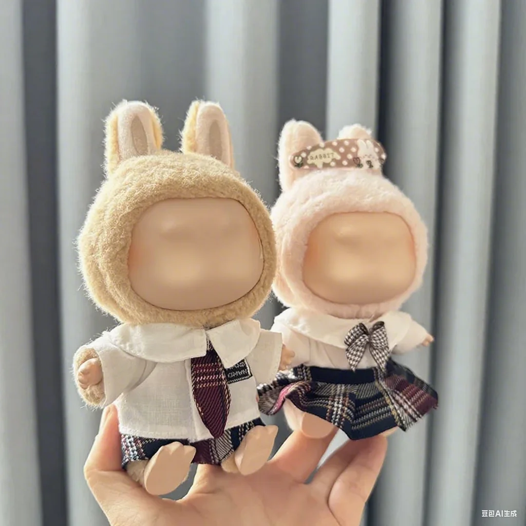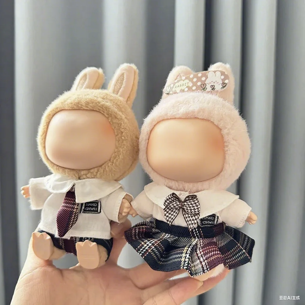 17cm Mini Labubu Clothes Designer Luxury School Uniform Anime Toys Plush Labubu Dolls Accessories Set Plush Labubu Outfit Doll clothes Accessorie Custom